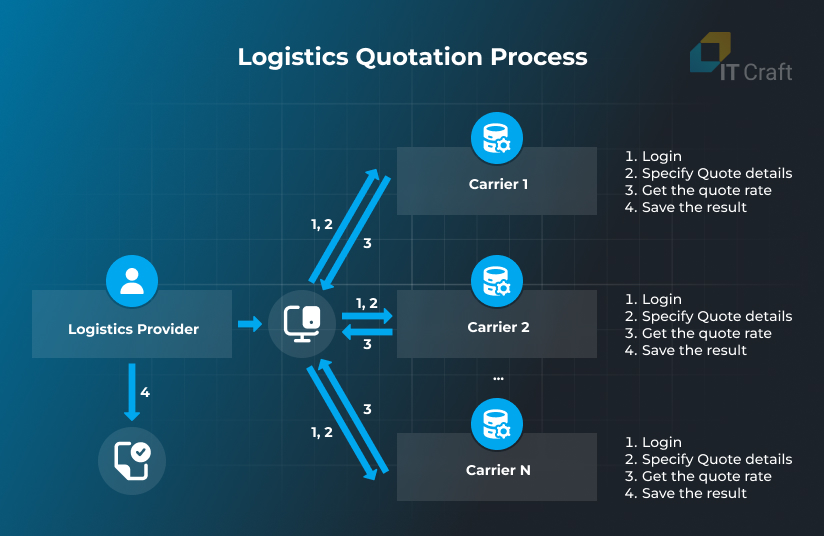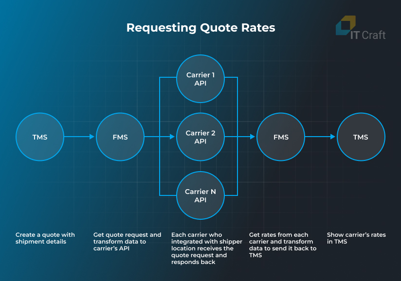 Logistics providers can send only one request to get quote rates from all connected carriers using an API provided by a freight management system.