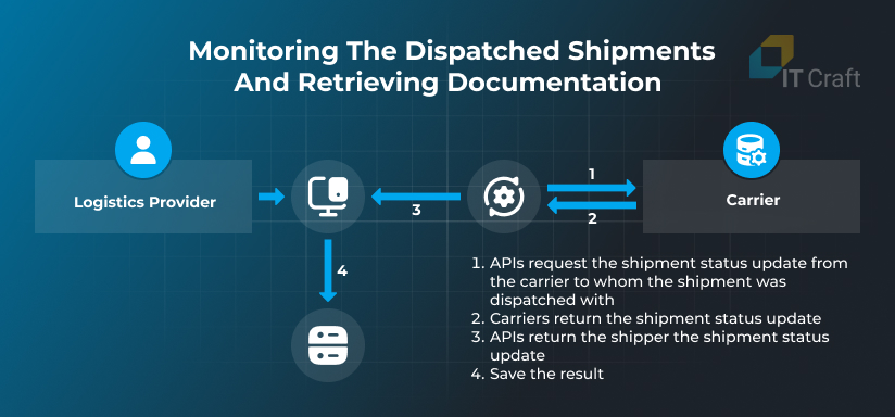 Without an API, logistics providers must visit carriers’ websites to check status updates. With an integrated tracking API, shipment status updates are sent to the provider’s TMS once the connected freight management system receives them from the carrier’s API.
