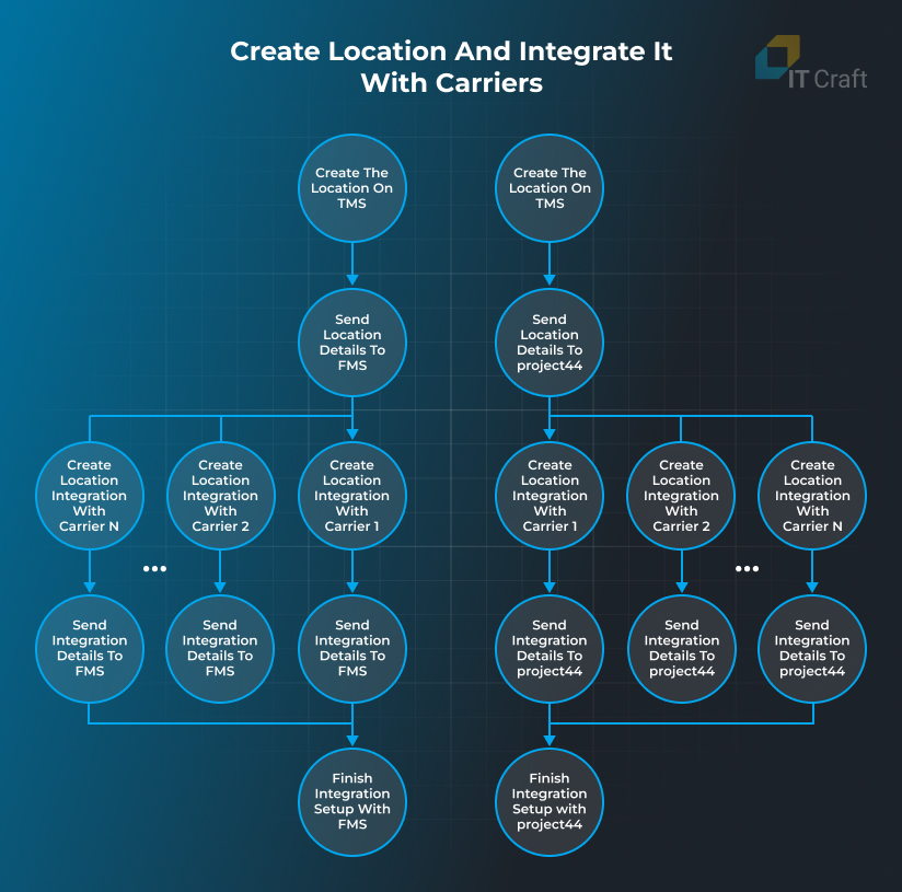 To create location integration, the logistics provider needs to send the carrierэs API credentials, which the carrier representative has assigned. These credentials grant access to the carrier API for quoting, dispatching, and tracking the shipment statuses within the freight management system.