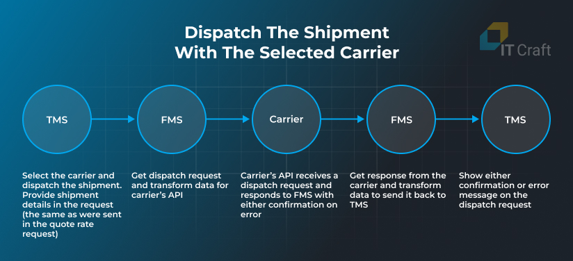 After reviewing carrier proposals of quote rates, the shipper chooses the best fit and requests a pickup for the shipment, i.e., makes a dispatch request. In the request, the shipper provides detailed information about the shipment. Usually, it includes the following: